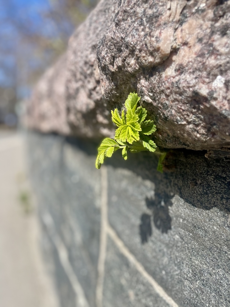 Kevään ensimmäiset vihreät lehdet ovat aina kuin symboli uudesta alusta. Niitä ei voi pysäyttää, vaan ne tunkevat läpi vaikka kivimuurista.