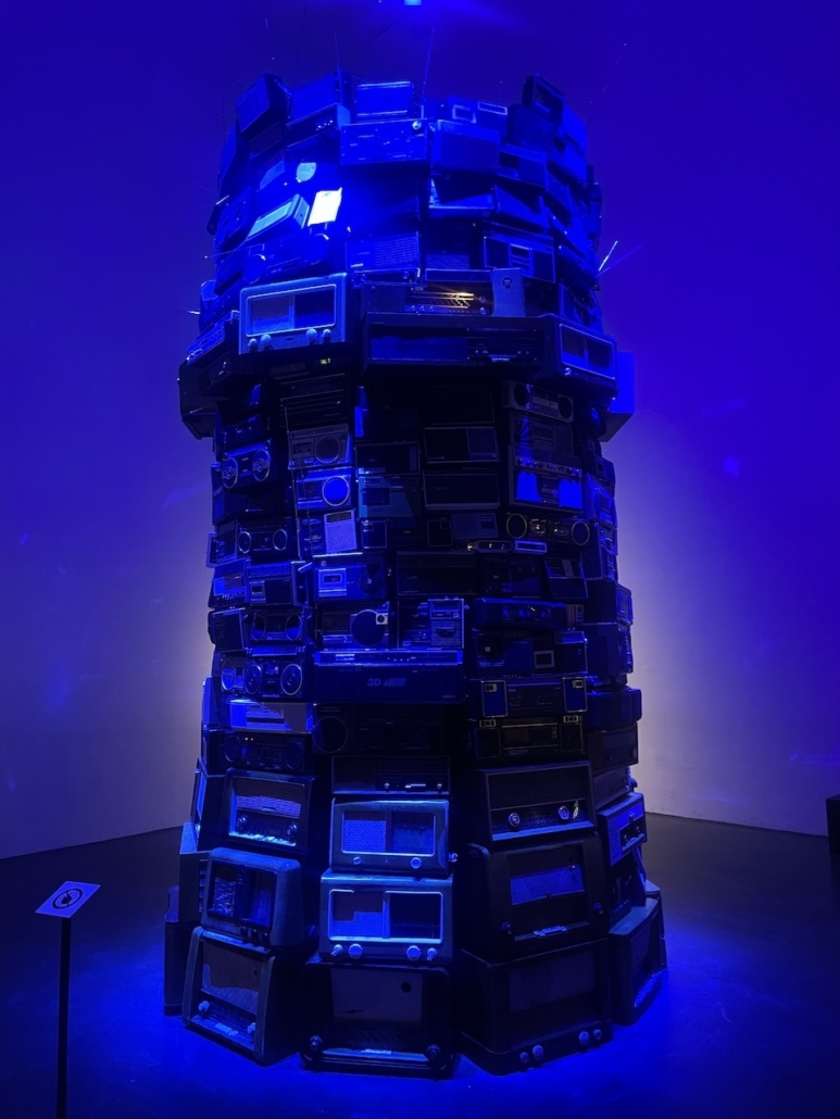 Kiasmassa näkemäni Cildo Meirelesin installaatio Babel sopii hyvin kuvaamaan oman pään sisällä toisinaan vallitsevaa sekamelskaa. Teoksessa on yli 300 radiota, ja osa niistä on päällä. Läsnäolija siis kuulee erikielisten radiokanavien puheen sekamelskaa, niin kuin silloin, kun Baabelin torni hajosi ja ihmisten kielet sekoittuivat.