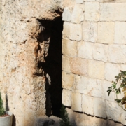 Muistan kuvan, jonka otin puutarhahaudalla, kun kävin Israelissa. Kellertävässä kiviseinämässä näkyy haudan musta suuaukko ja rautakaide, jonka takana hauta on.