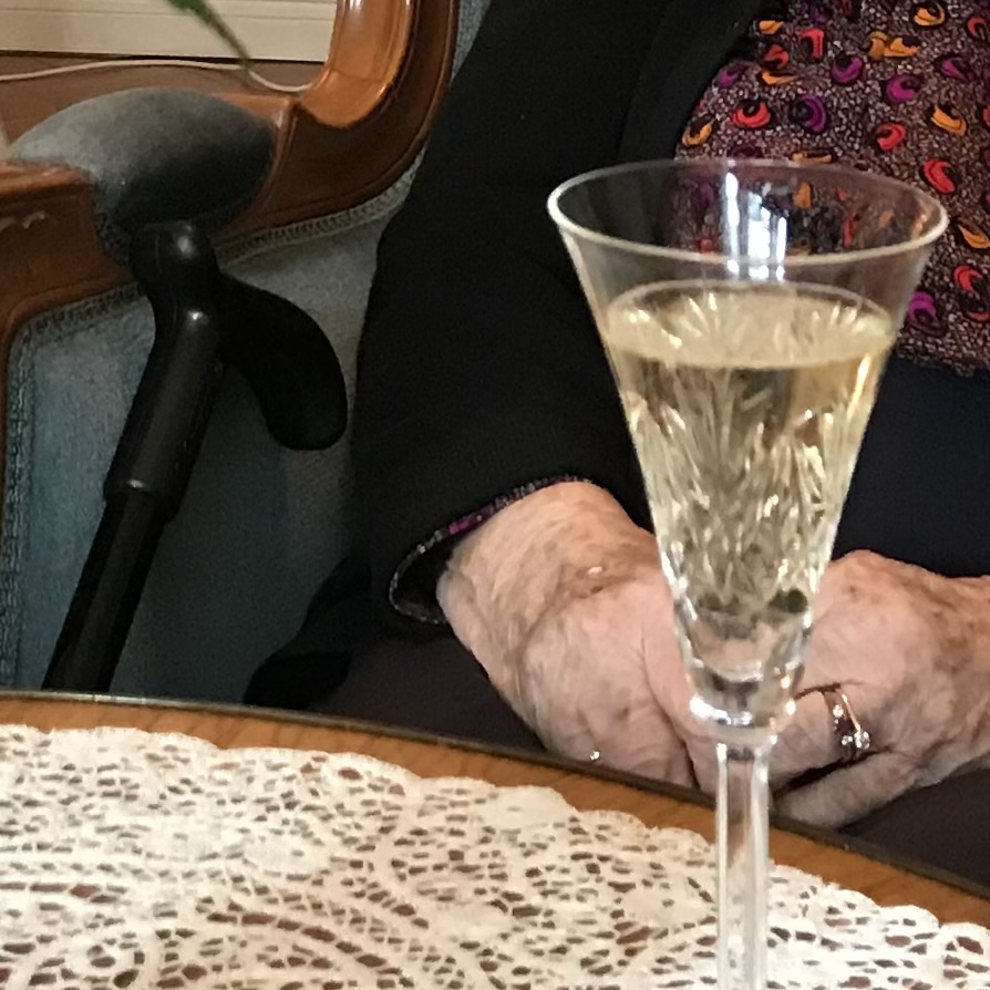 Tänään oli juhlapäivä. Anoppi täytti 92 vuotta. Emme tyytyneet tällä kertaa vain kuohuviiniin, vaan joimme oikein samppanjaa, kristallilaseista.